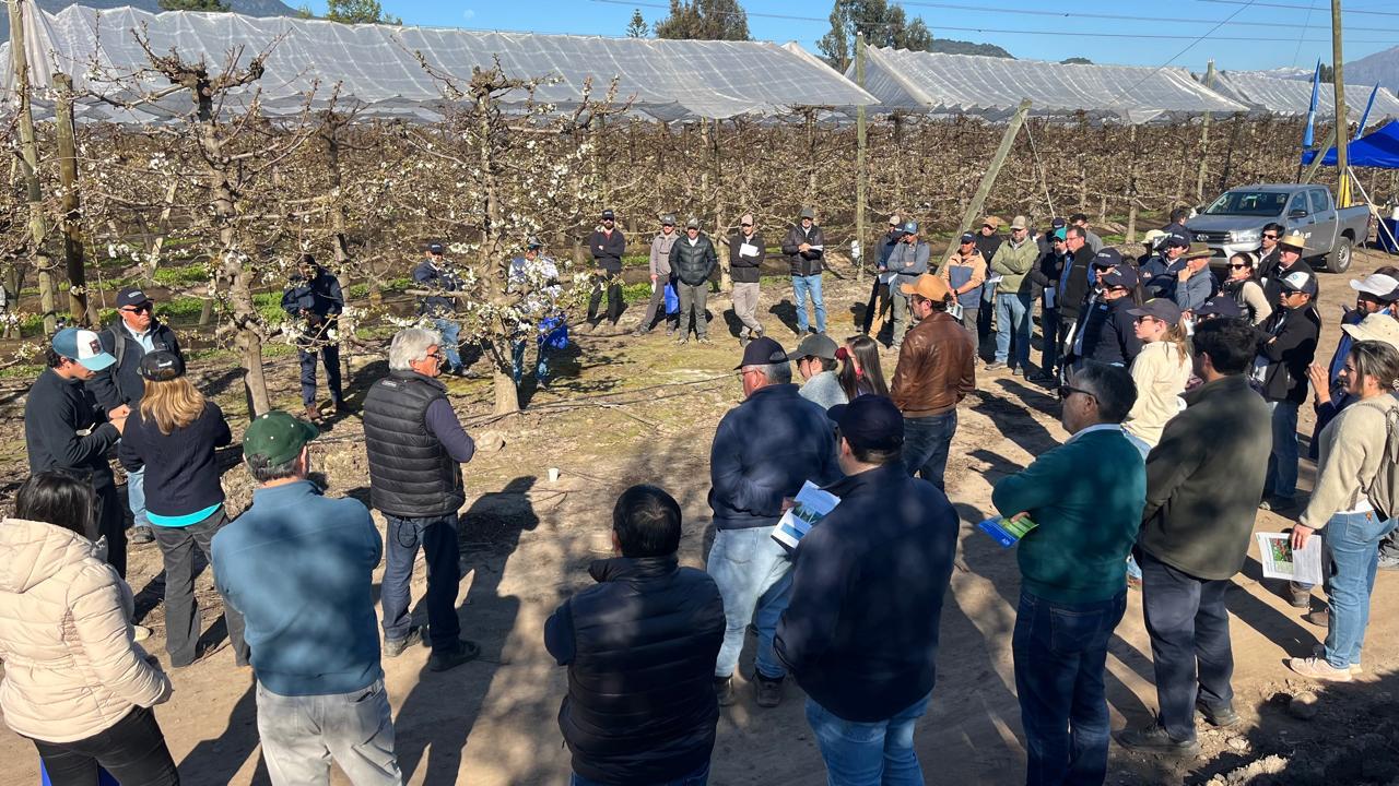 The activity, part of the agricultural extension program we are carrying out with this institution, was led by renowned advisors such as Jordi Casas (expert in pome and stone fruits), Marlene Ayala (PhD in Sciences and professor at PUC Chile), along with Edwin Moore, Head of Agricultural Development at Inchalam. Through presentations and a field tour to see our solutions in practice, they explained the features of these structures, their benefits, and the details of the materials (posts, wires, etc.).